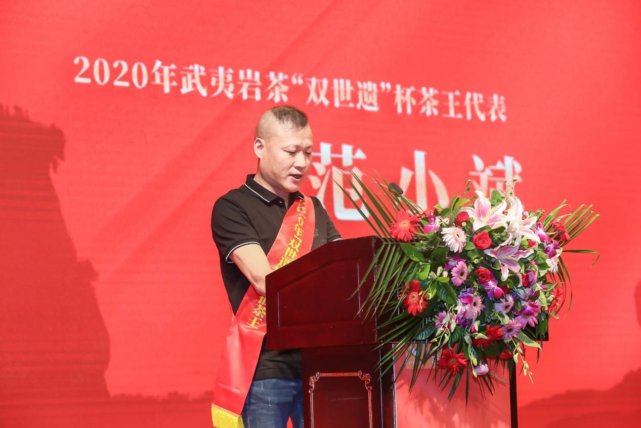 范小斌:高奖金刺激兴奋值,高权威提升含金量,高标准推动技术进步 2020年武夷岩茶“双世遗”杯茶王赛水仙茶王获得者范小斌,作为茶王代表发言时说,“我参加过很多比赛,也获得过很多茶王,但是“双世遗”杯茶王赛确实很不一样。不管是奖金、规模、还是赛事的公正性都给我们武夷山茶农圈留下了深刻的印象。” 范小斌表示,看到这个茶王赛的消息时,确实刺激了他们武夷山茶农的兴奋值,大家都摩拳擦掌为比赛做准备。今年茶王赛奖金提升了,获奖人数增加了,大家的热度肯定又更高了,对他们制茶技术提出了更高的要求。