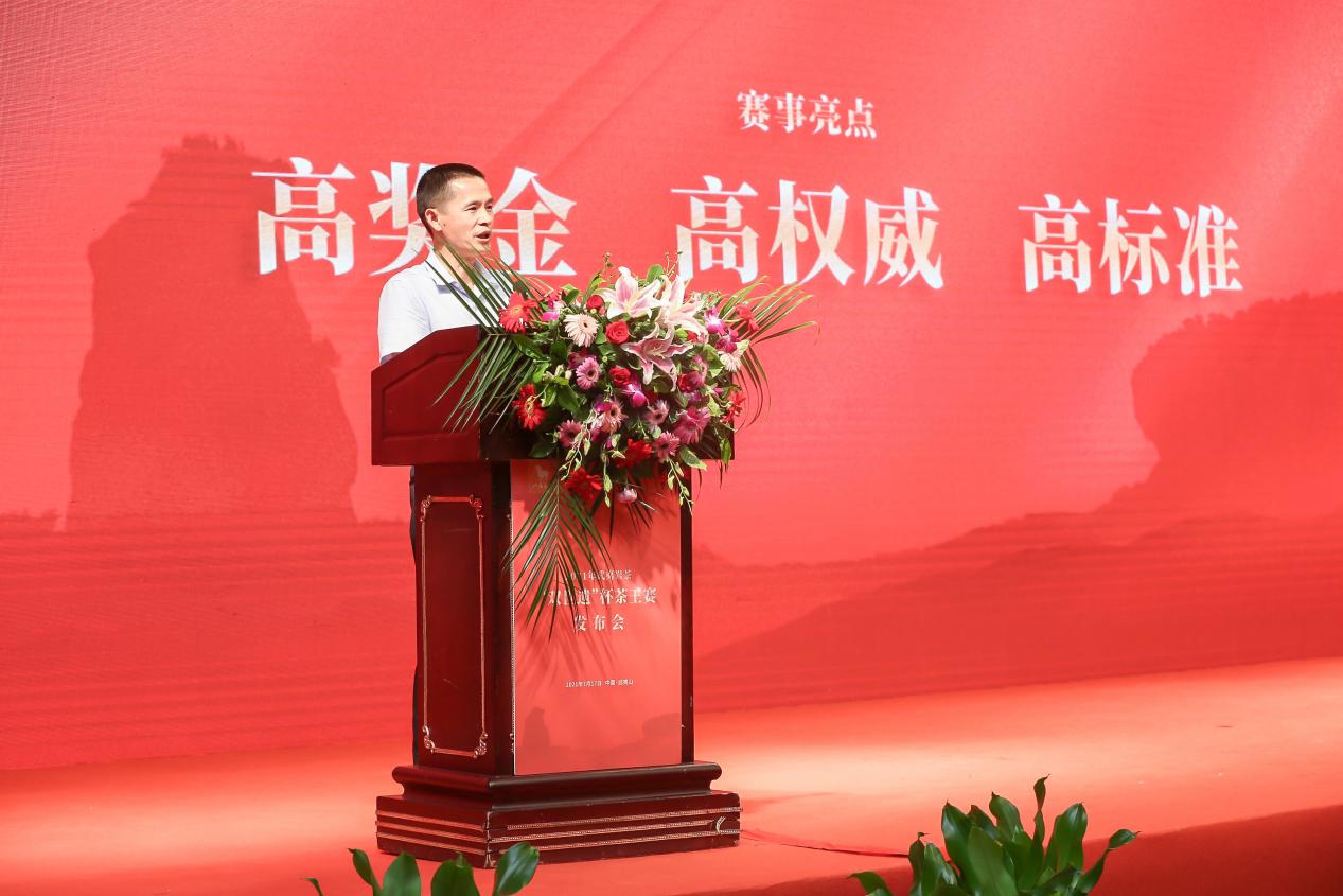 八马茶业股份有限公司总经理吴清标现场致辞 吴清标:通过高标准茶王赛,为武夷岩茶打造高层次、规范化竞技平台 八马茶业股份有限公司总经理吴清标在致辞中表示,秉承着矢志不移为消费者甄选好茶的初心,八马茶业去年在武夷山投资兴业,武夷岩茶“双世遗”杯茶王赛取得了相当成功,也是在2020年,八马茶业荣获武夷岩茶原产地茶企纳税冠军。 八马茶业有责任助力武夷岩茶发展,通过举办茶王赛,重金激励制茶高手做好茶,形成做好茶氛围,为武夷岩茶打造一个高层次、规范化的技术竞技与交流平台。