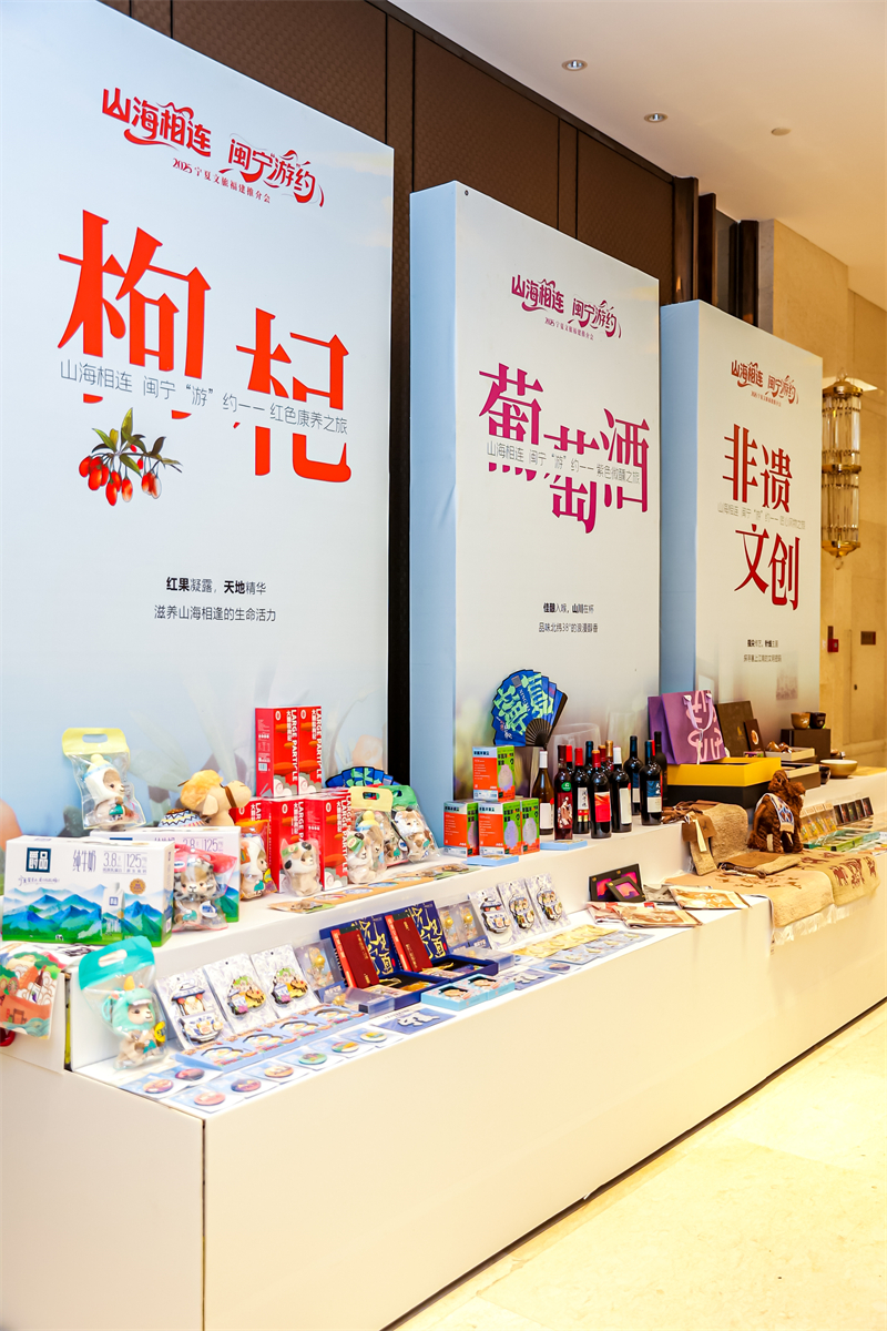 “闽宁风物”体验区 主办方供图 活动现场设置的“闽宁风物”体验区成为亮点,枸杞、葡萄酒等宁夏特产及非遗文创产品吸引了众多目光。“我在福建晒宁夏”互动摄影墙则增强了活动的参与性与传播效果。 此次推介活动,标志着闽宁两地在文旅领域的合作从单一的资源介绍,转向了产品共创、市场共享的深度合作阶段。基于资源的高度互补性,这种以市场为导向的协作,有望为两省游客带来更丰富、更优质的旅游选择,并为跨区域文旅合作提供新的范式。 |